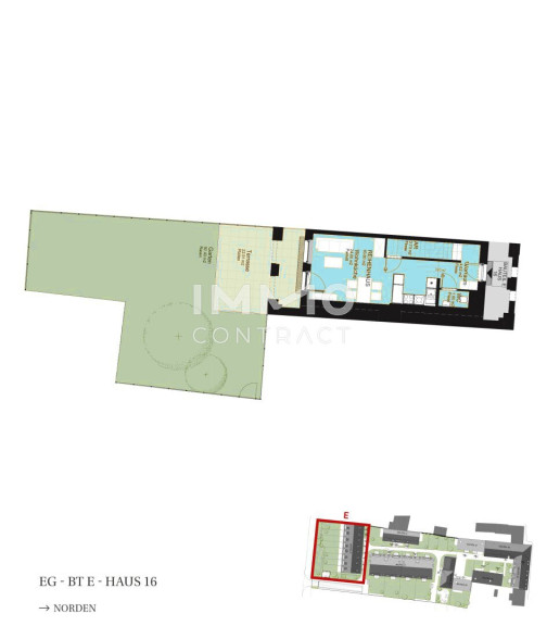 - 20 Eigentumswohnungen und 16 Reihenhäuser auf 5 Baukörper verteilt