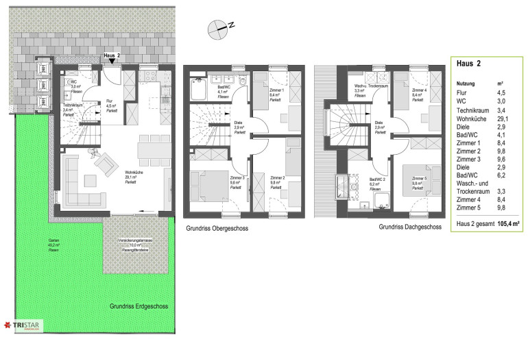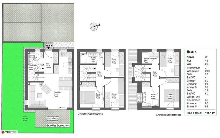 - GARTEN / ERDGESCHOSS / OBERGESCHOSS / DACHGESCHOSS: