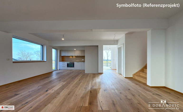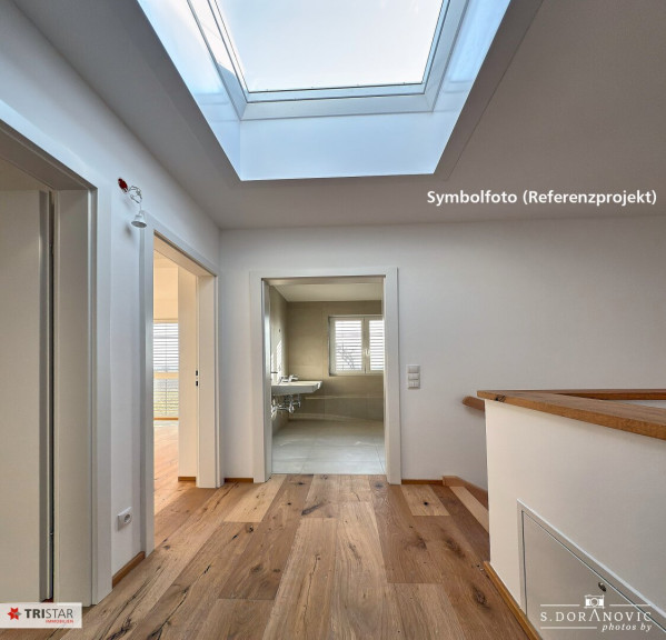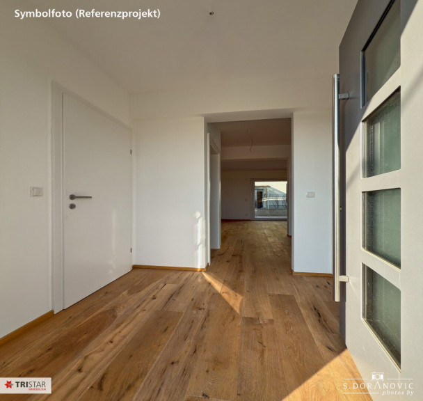 Die Fotos sind Symbolfotos (Referenzprojekt) aus einem bereits realisierten und verkauften Projekt des Bauträgers und dienen dazu, den schlüsselfertigen Zustand (ohne Küche) besser einschätzen zu können.