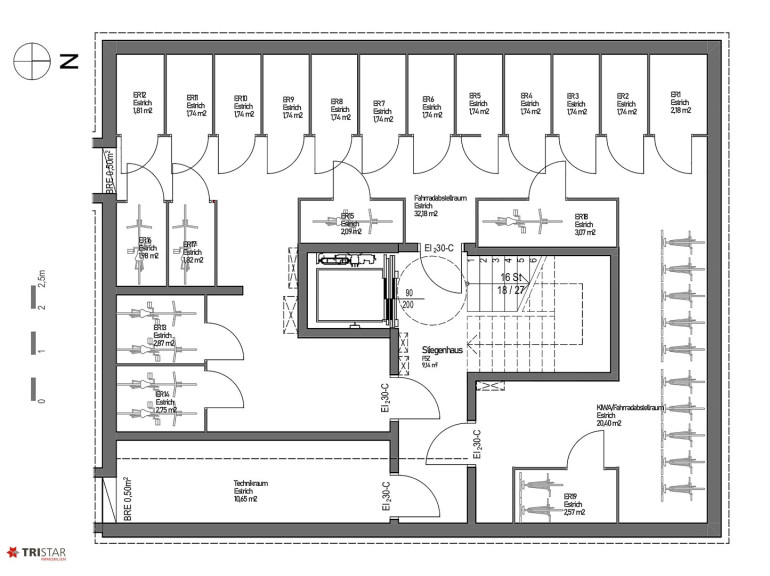 Alle Räume sind separat begehbar und vom Vorraum aus erreichbar.