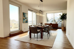 Die Ausstattung der Wohnung ist modern und hochwertig. Fliesen und Parkettböden sorgen für ein elegantes und charmantes Ambiente. Eine Fußbodenheizung sorgt für wohlige Wärme in den kalten Monaten. Der Personenaufzug bringt Sie bequem und schnell in Ihre Wohnung, auch wenn Sie einmal schweres Gepäck haben.