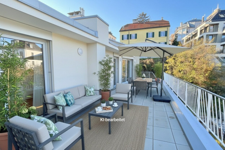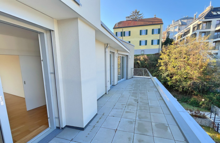 Die beiden Terrassen bieten Ihnen einen atemberaubenden Blick auf das Stift Klosterneuburg, die Au und auf die Umgebung und sind perfekte Orte, um sich zu entspannen oder mit Freunden und Familie die Freizeit zu verbringen. Die großzügige Gestaltung der Wohnung sorgt für viel Licht und Luft, so dass Sie sich immer wohl fühlen werden.