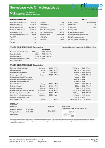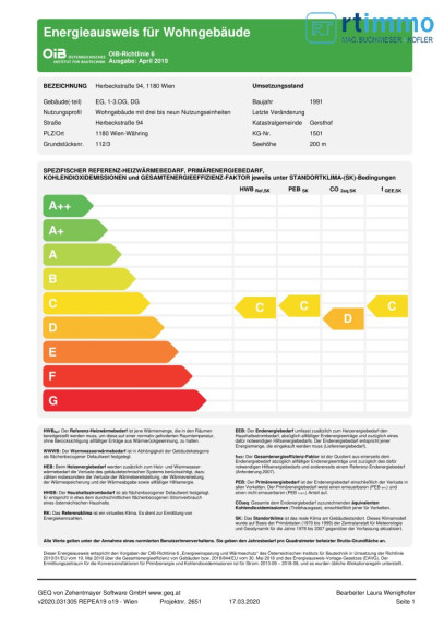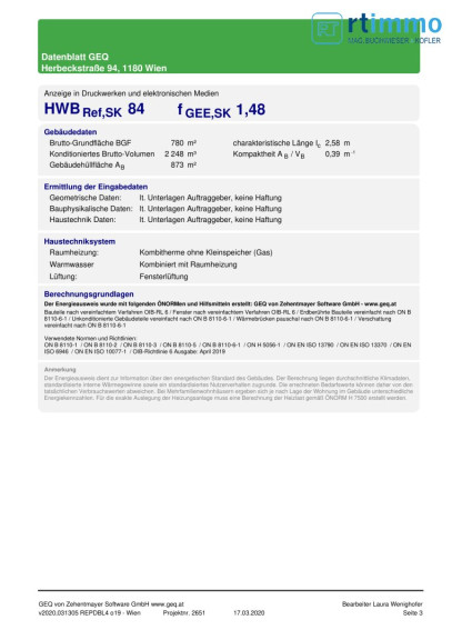 | Heizwärmebedarf: | C 84,00 kWh/m²a |