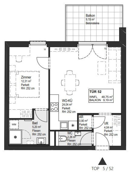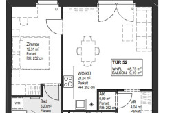Fliesen, Parkett, Fußbodenheizung, Einbauküche, Westbalkon, Dusche