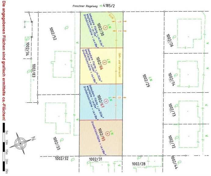- nur 4 Teilflächen mit jeweils ca. 418 m²