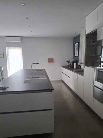 Die Wohnung befindet sich über der Ordination und ist atemberaubend. Sie betreten die Wohnung durch einen Eingangsbereich, von dem aus Sie auch den Garten erreichen können. Wenn Sie die Stiegen in den ersten Stock hinauf gehen, eröffnet sich Ihnen ein wunderbarer Wohnraum mit offener Küche. In diesem Bereich sind wirklich keine Wünsche an modernes Wohnen offen geblieben. Sie finden eine moderne Einbauküche mit allen Geräten, eine große Kochinsel, die gleichzeitig die Küche vom Essbereich trennt. Einen gemütlichen Kuschelbereich, der in eine große Fensternische eingebaut ist und natürlich auch den Wohnbereich. Die großen Fensterflächen lassen hier Innen- und Außenbereich fließend ineinander über gehen!
