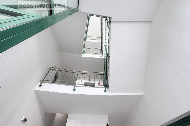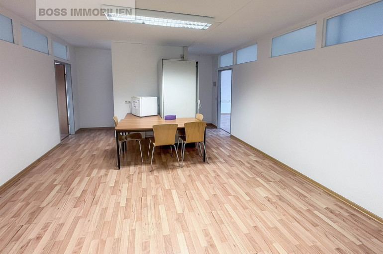 Heller Arbeitsraum mit Laminatboden, guter Beleuchtung und vorbereiteter EDV-Infrastruktur – einziehen, einrichten, loslegen. Die gemeinschaftlich genutzte Teeküche und Sanitärbereiche sorgen für Komfort im Arbeitsalltag.