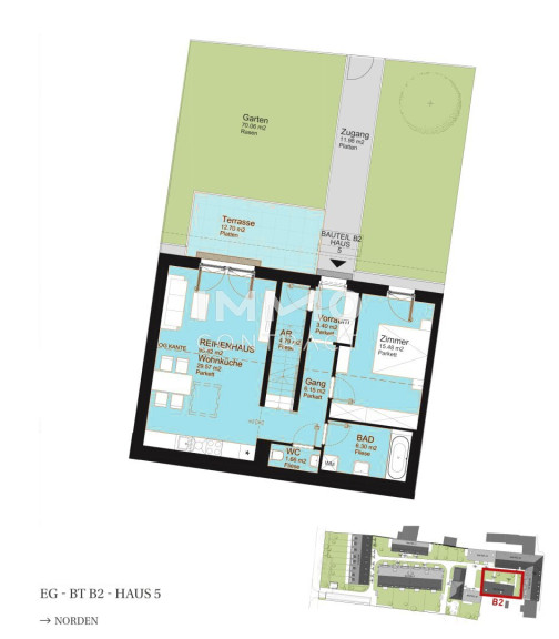 - Private Freiflächen bei allen Einheiten: Gärten, Terrassen, Balkone oder Loggien