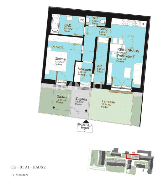 - Reihenhäuser: ca. 81 m² – 122 m²