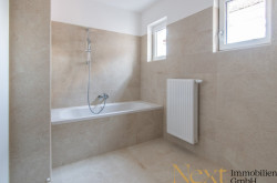 Das zeitlos gestaltete Badezimmer ist mit einer Badewanne, einem Waschbecken sowie einem Waschmaschinenanschluss ausgestattet. Ergänzt wird das Raumangebot durch ein separates WC sowie einen praktischen Abstellraum.
