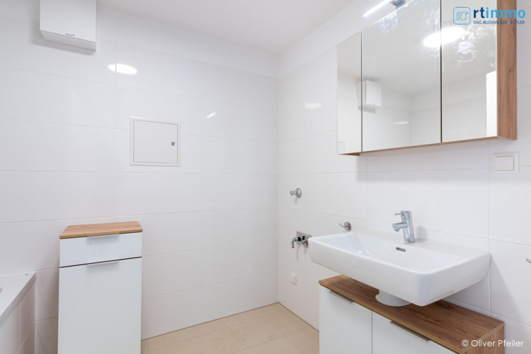 Diese besondere Dachterrassenwohnung mit AIRCONDITION besteht aus einer modernen Wohnküche mit einer edlen Küche, die alles bietet. Die mit Holzdielen ausgelegte Dachterrasse liegt direkt vor der Wohnküche und ist von dort und auch dem Schlafzimmer zu betreten. Zusätzlich gibt es noch ein weiteres Zimmer, welches Sich als Kinderzimmer, oder auch als Ihr Homeoffice eignet. Ein schönes gut ausgestattete Wannenbad und ein großer Abstellraum komplettieren die Wohnung.