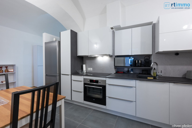 Terrasse, hochwertige Küche, Parkettböden, hochwertige Möbel, hochwertiges Bad mit Wanne, Parkettböden, uvm.