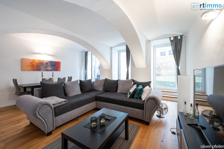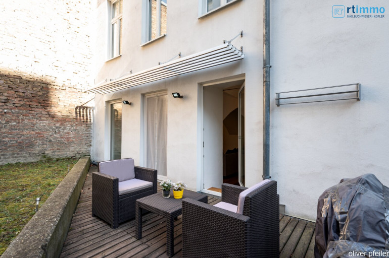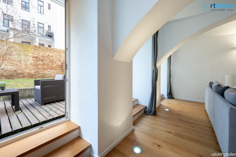 Diese beeindruckende Wohnung in Donaukanalnähe besticht durch eine sehr angenehme Atmosphäre auf Grund der sehr schönen Ausstattung, dem wunderschönen Gewölbe im Wohnzimmer und den Ausgang zur Terrasse und Garten.