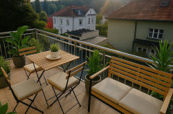 Der Balkon lädt zu entspannten Stunden im Freien ein – sei es beim Frühstück in der Morgensonne oder bei einem Glas Wein am Abend.