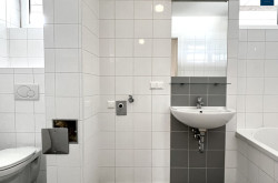 - Helles Badezimmer mit stilvollen Fliesen