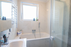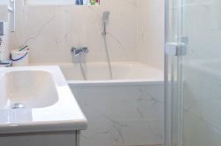 - Bad mit Dusche, Wanne, Waschtisch, WM-Anschluss und WC