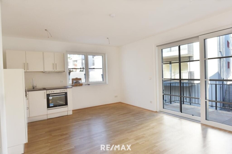 Vom Wohn- und Schlafzimmer aus gelangen Sie direkt auf den Balkon, der zusätzlichen Freiraum im Alltag bietet.