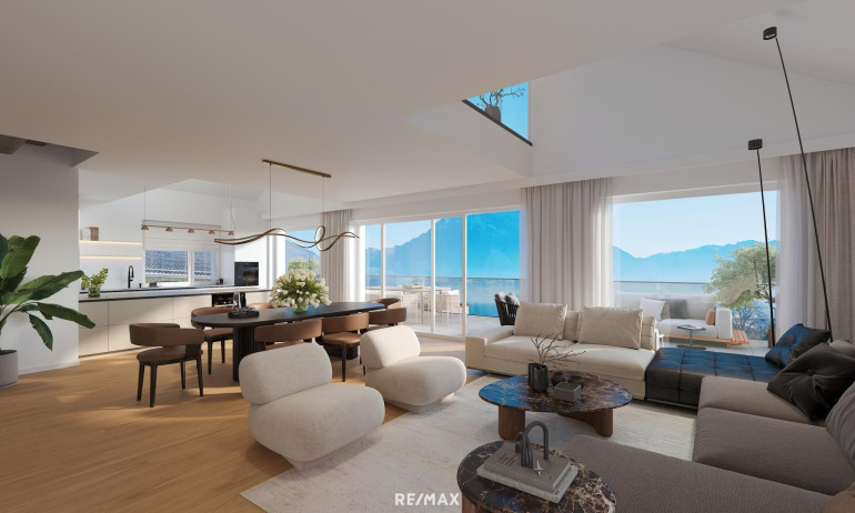 Hochwertige Architektur und durchdachte Raumplanung: Die moderne Architektur und die sorgfältige Bauweise sorgen für ein ansprechendes Wohngefühl, das sowohl ästhetische als auch funktionale Ansprüche erfüllt. Jede der barrierefreien Wohnungen zeichnet sich durch großzügige Raumkonzepte und gehobene Ausstattungsdetails aus. Große Fensterfronten lassen viel Licht in die Wohnungen und bieten herrliche Ausblicke auf den Traunsee und den Traunstein. Loggien, Balkone oder Terrassen laden dazu ein, diese atemberaubende Kulisse in vollen Zügen zu genießen.