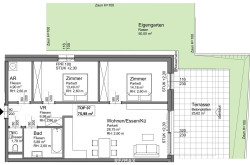 Top 7 ist eine attraktive 3-Zimmer-Wohnung im Erdgeschoss mit einer überdachten Terrasse und einem eigenen Garten, ideal für entspannte Stunden im Freien. Der offene Wohnbereich schafft eine moderne und einladende Atmosphäre. Die Wohnung verfügt über zwei Schlafzimmer und ein Badezimmer, das wahlweise mit Dusche oder Badewanne ausgestattet werden kann. Ein geräumiger Abstellraum mit Waschmaschinenanschluss bietet zusätzlichen Stauraum und praktischen Komfort.