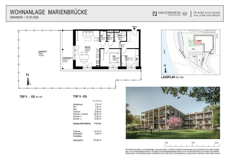 Jede Wohnung verfügt über eine großzügige Terrasse oder einen Balkon, die den Wohnraum ins Freie erweitern und ein Gefühl von Freiheit und Leichtigkeit vermitteln. Die durchdachte Architektur sorgt für helle, offene Räume und ein modernes Wohngefühl. Beheizt wird das gesamte Objekt nachhaltig und effizient über eine moderne Luftwärmepumpe.