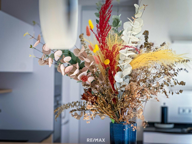 Kontrollierte Wohnraumlüftung sorgt stets für angenehmes Raumklima. Innovative Solarpaneele ergänzen den Allgemeinstrom, während eine Loxone Smart Home Steuerung ausgewählte Bereiche komfortabel bedient. Für Beschattung sorgen die installierten Raffstores. Sowohl Koch-Wohn-Essbereich als auch die Schlafzimmer sind bereits mit Fliegenschutzgittern versehen.
