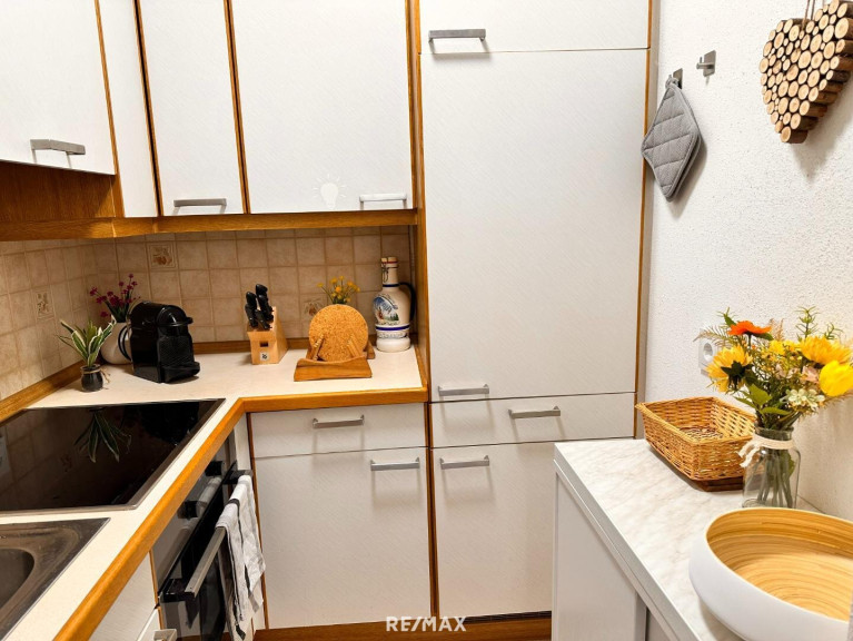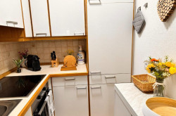 Die Wohnung besteht aus einem Wohn-Schlafbereich, einem kleinen extra Schlafzimmer mit Stockbett, einem Bad mit Dusche und WC und Waschmaschine und einer kleinen Küche. Die hübsche Loggia rundet die Wohnatmosphäre wunderbar ab.