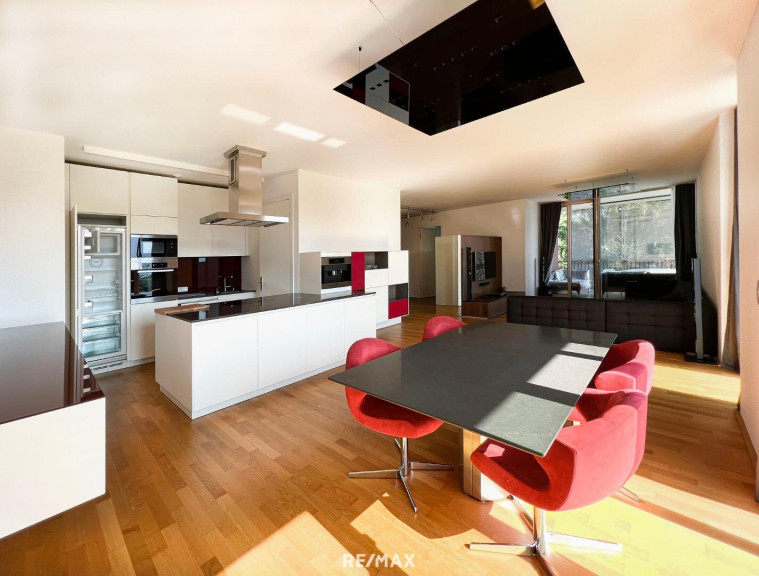 Diese hochwertig möblierte Mietwohnung mit ca. 130 m² Wohnfläche befindet sich im 2. Obergeschoss (Haus 3) der Parkvillen Altmünster und ist selbstverständlich barrierefrei per Lift erreichbar.