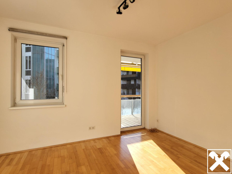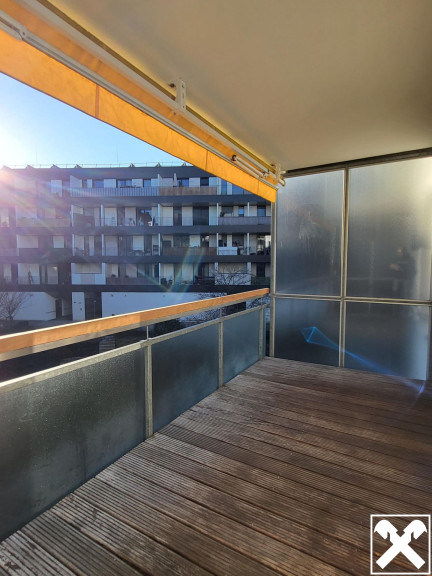 Außenjalousien und eine große Markise bei der Loggia sind bauseits bereits ausgeführt.