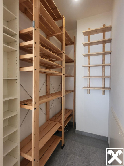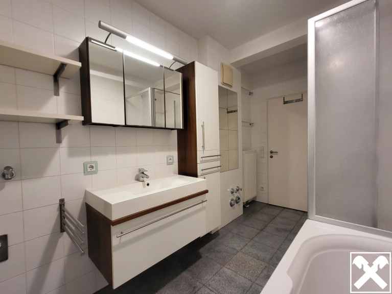 Badezimmer-Einrichtung, Garderobe, Einbauregal im Wohnzimmer, Kleiderkasten im Schlafzimmer, Regale in Abstellraum und Kellerabteil können kostenfrei übernommen werden.
