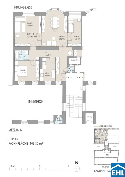 In der begehrten Neulinggasse erwartet Sie ein umfassend sanierter Altbau (Baujahr 1913), der 2021 durch einen Dachgeschoßausbau erweitert wurde.