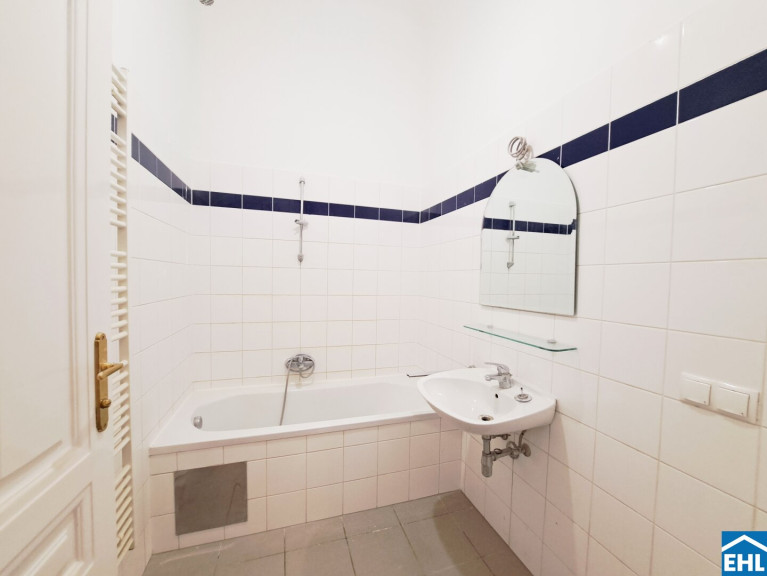 Die Zimmer dieser attraktiven 4-Zimmer-Altbauwohnung sind überwiegend zentral begehbar. Der bestehende Parkettboden sowie die klassischen Altbaufenster und -türen werden derzeit hochwertig saniert. Im Badezimmer wird zusätzlich eine Duschglasabtrennung sowie ein neues Waschbecken montiert.