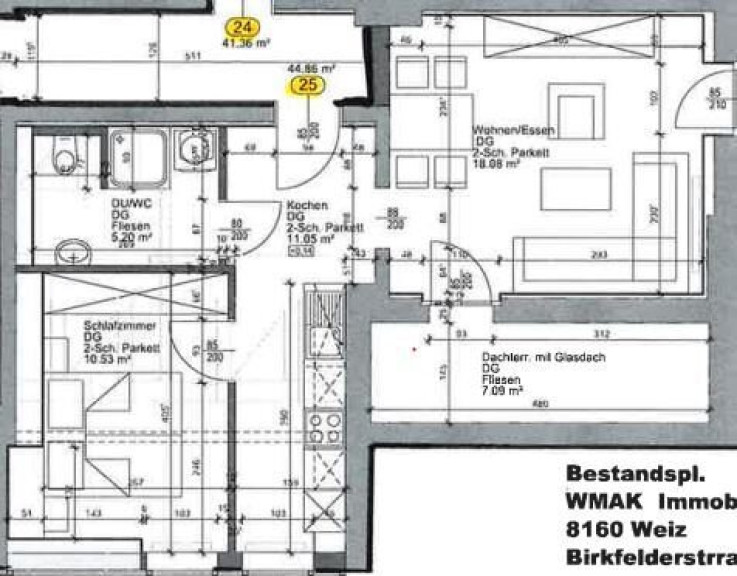 Die rd. 45 m² Wohnfläche teilen sich wie folgt auf: