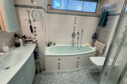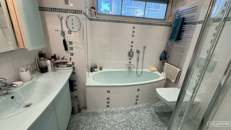 Ein Bad ist mit Badewanne und Dusche ausgestattet, das zweite bietet eine Dusche. Ein Badezimmer verfügt über Tageslicht, das andere ist innenliegend gehalten.