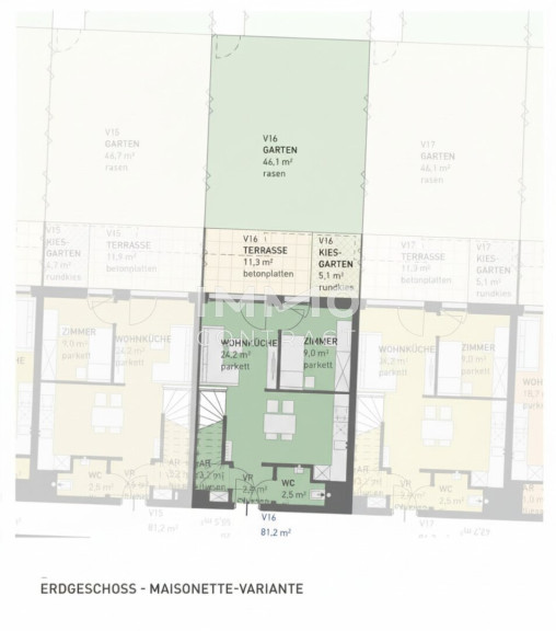 Bei Bedarf an mehr Wohnfläche berät das Vertriebsteam gern: Auf Wunsch lassen sich übereinanderliegende Einheiten zu einer Maisonette (4 Zimmer) verbinden oder nebeneinanderliegende Wohnungen zu größeren Einheiten zusammenlegen. Für Eigentümer besteht optional die Möglichkeit eines eigenen Gartenabteils; alle Gartenflächen werden mit Strom und Wasseranschluss versehen.