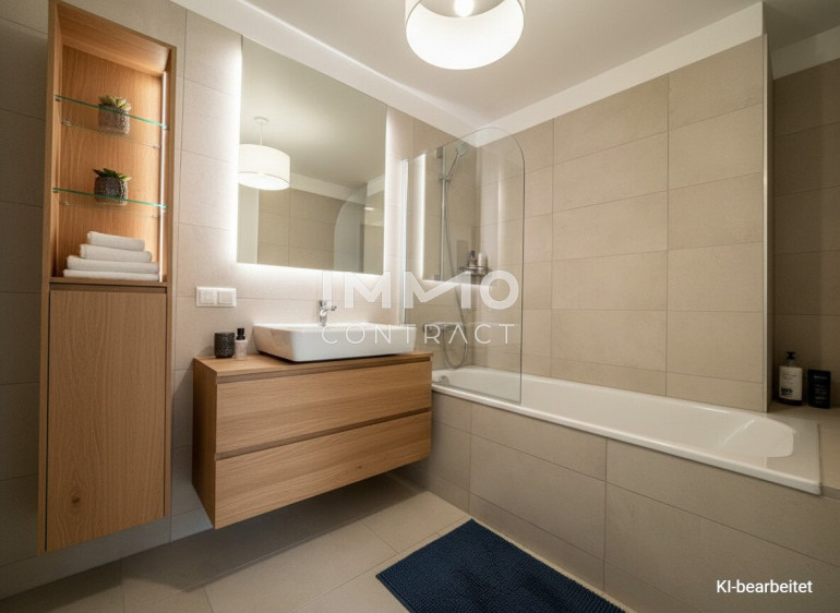 Willkommen in Ihrem neuen Zuhause: Diese helle 3-Zimmer-Wohnung im 1. Dachgeschoss überzeugt mit rund 89 m² Wohnfläche und einer durchdachten Raumaufteilung –perfekt für Familien oder Pärchen, die großzügigen Wohnraum schätzen. Herzstück ist die großzügige, klimatisierte Wohnküche mit direktem Zugang zum Balkon, der zu entspannten Stunden einlädt. Zwei ebenfalls klimatisierte Zimmer, ein stilvolles Bad mit Doppelwaschbecken und Badewanne sowie ein separates WC und ein praktischer Abstellraum bieten höchsten Wohnkomfort. Ein Kellerabteil sorgt zusätzlich für wertvollen Stauraum.