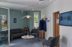 - Ein weiterer Ordinationsraum mit einem Arbeitsplatz, eingebautem Schrank und Behandlungsliege