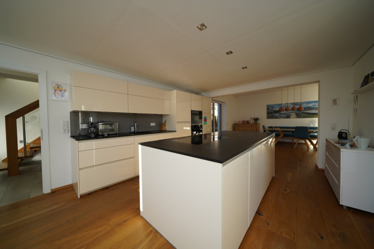 Dieses gepflegte Einfamilienhaus besteht aus einem Bestandsobjekt, dass 2019 generalsaniert und durch einen Zubau erweitert wurde. Die Immobilie bietet vier Zimmer und zwei Bäder, aufgeteilt auf zwei Etagen. Der Wohnraum besticht durch eine moderne Küche mit Kücheninsel, die zusammen mit dem Essbereich und dem Wohnzimmer eine großzügige Einheit bildet. Zwei Terrassen sowie der Garten bieten perfekte Voraussetzungen für Outdoor-Living, Spielbereiche oder einen Pool.
