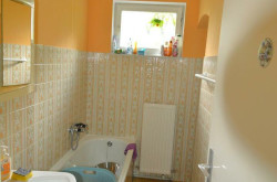 - Badezimmer mit Badewanne - Dusche - WM- Anschluss und Seitenausgang