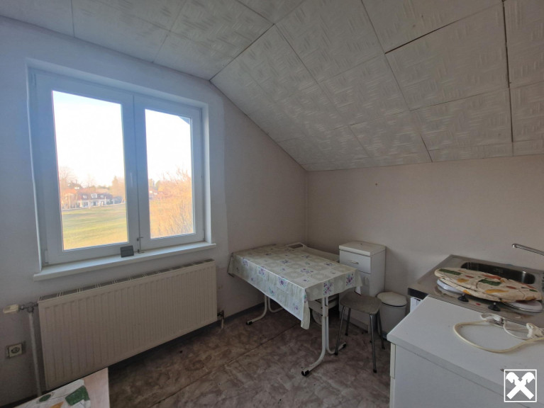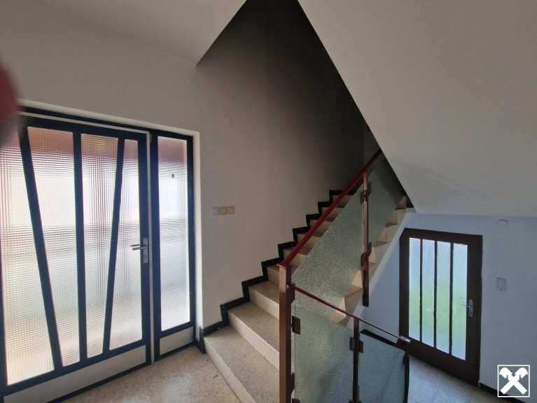 Massive Stiegenanlagen führen in das Obergeschoss. Weitere Wohnwünsche werden hier durch ein herrliches Wohnzimmer mit vorgelagertem Balkon, ein Schlafzimmer, eine Küche sowie ein Badezimmer mit Dusche und WC erfüllt.
