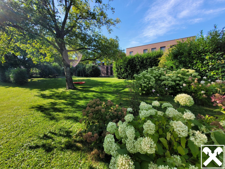 Das Herzstück der Anlage, der große und ruhige Garten mit einem alten Baumbestand bleibt erhalten. Die Grünanlage bietet einen großen Erholungswert und betont das hervorragende Ambiente und die Großzügigkeit der Anlage.