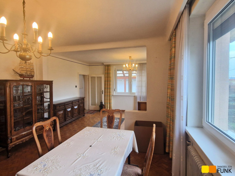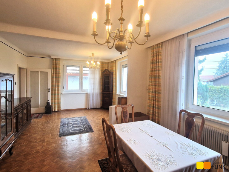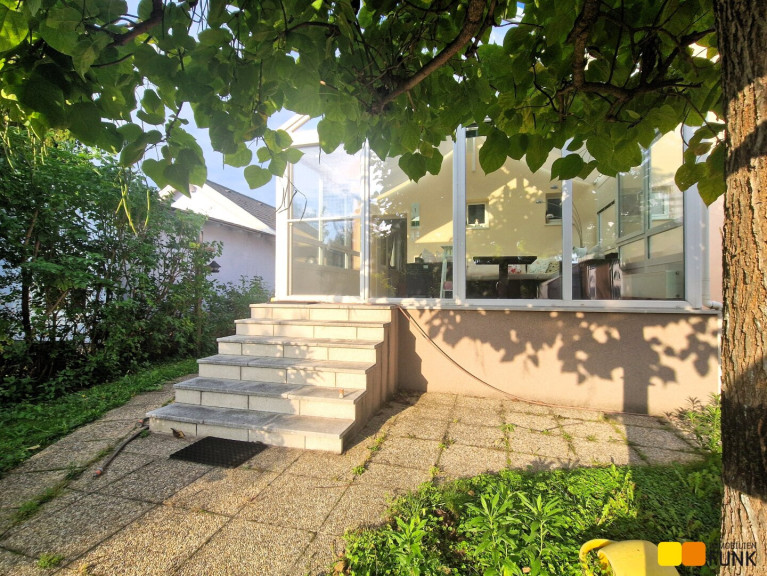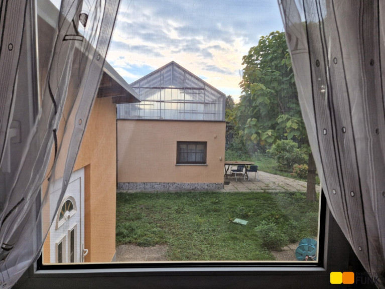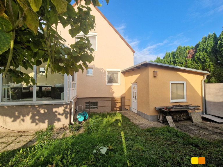Das im Jahr 1962 in Ziegelmassivbauweise errichtete Einfamilienhaus präsentiert sich in gepflegtem, aber renovierungsbedürftigem Zustand. Es wurde über die Jahre erweitert, so sind Wintergarten, Garage und zwei Nebengebäude sowie Glashäuser dazu gebaut worden. Das Haus ist zum Großteil unterkellert. Der Keller ist zum Teil als Kellerstüberl, zum Teil als Technikraum ausgestaltet. In der aktuellen Grundrissgestaltung bietet das Haus einen großen Wohnbereich und Wintergarten, zwei Schlafzimmer, eine separate Küche, zwei WCs und zwei Bäder, und mehrere Abstellräume.