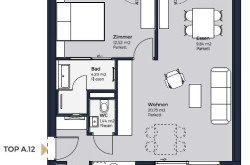 Das hochwertig ausgestattete 2-Zimmer-Domizil im 1.OG mit 71,26 m² gewichtete Nutzfläche bietet