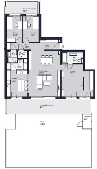 Die großzügig angelegte 4-Zimmer-Gartenwohnung mit 139,89 m² gewichtete Nutzfläche bietet: