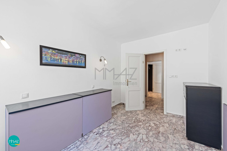 Bequem mit dem Lift erreichbar, liegt diese Wohnung im 6. Stock einer gepflegten Wohnhausanlage. Vom Vorraum aus sind sowohl das Kabinett mit Schrankraum, das großzügige Wohnzimmer mit Essbereich, die separate Küche als auch das Badezimmer zentral begehbar. Das zweite Schlafzimmer befindet sich im hinteren Bereich der Wohnung und ist direkt an das Wohnzimmer angeschlossen.