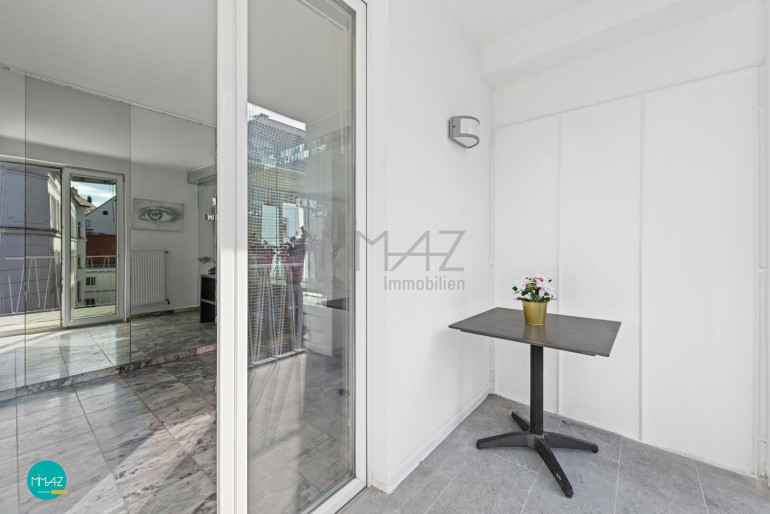 Ein besonderes Highlight ist der Balkon im 6. Liftstock - ein echter place to be, der dank seiner Ausrichtung einen stimmungsvollen Blick auf die lebendige Rotenturmstraße bietet und das Stadtgefühl unmittelbar spürbar macht.