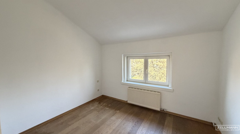 Ein Schlafzimmer bietet angenehmen Rückzugsraum. Ein separates, kleineres Büro schafft ideale Voraussetzungen für Home-Office oder Gäste.