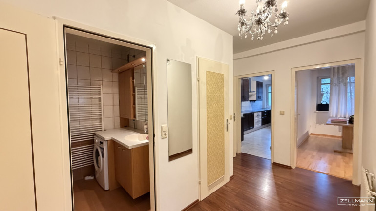 Diese gut geschnittene 3-Zimmer-Wohnung überzeugt durch ihre ruhige Lage, die praktische Raumaufteilung und vor allem durch die Loggia als geschützten, privaten Außenbereich mit Grünblick. Lift, Garage im Haus, Kellerabteil und separate Küche runden das Angebot ab.