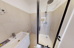 - das Bad mit Dusche und Waschmaschinenanschluss
