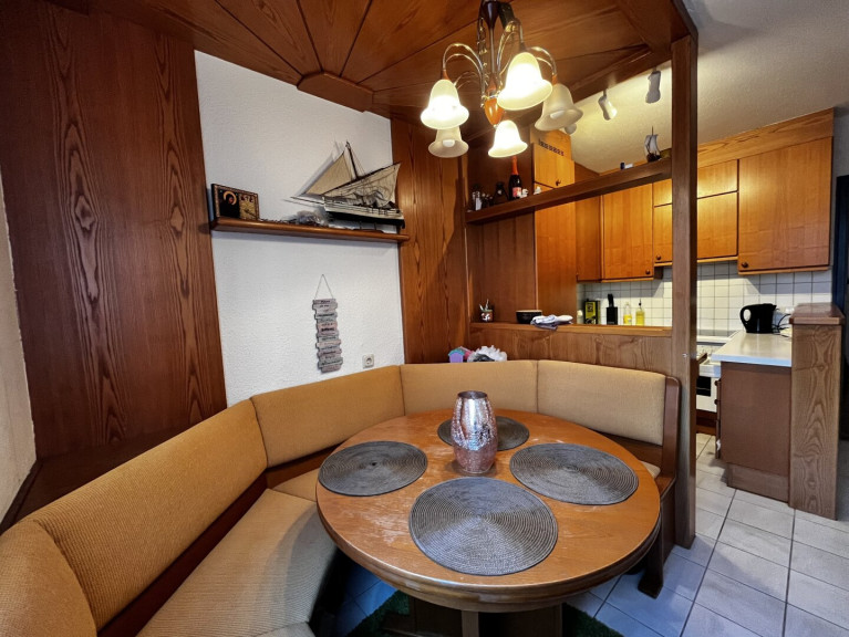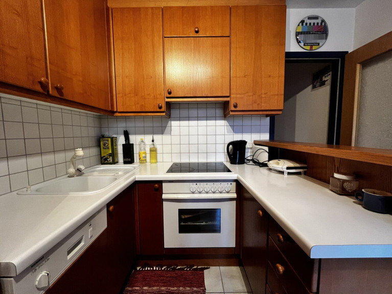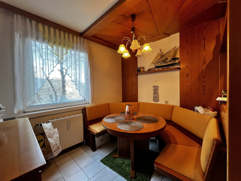 Auch die Küche ist geräumig und funktional ausgestattet. Sie verfügt über eine Einbauküche sowie einen praktischen Ecktisch, der sich ideal für den täglichen Gebrauch eignet.