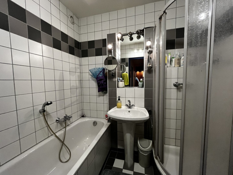Bad und WC sind getrennt voneinander angelegt. Das Badezimmer ist komfortabel ausgestattet und verfügt sowohl über eine Dusche als auch über eine Badewanne, wodurch zusätzlicher Komfort im Alltag geboten wird.